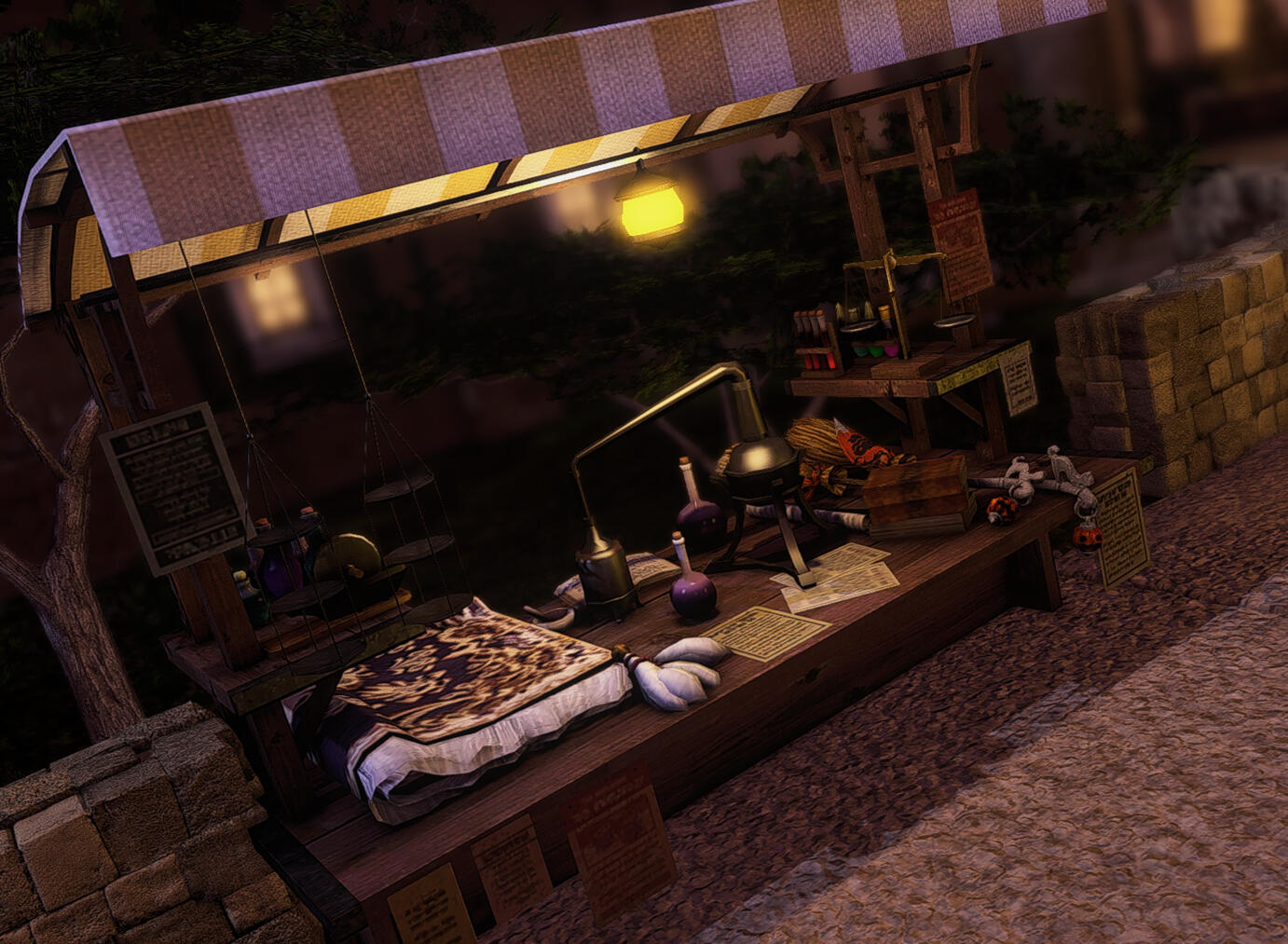 | Der Dunkle Name des Geschäfts und auch der seines Inhabers. Ein Laden zweifelhaften Rufs, der sich in die Schatten schmiegt. Nie wird man dort das gleiche in zwei unterschiedlichen Nächten finden und selten sind die Waren lupenrein. Eine Grauzone für die Wagemutigen. Ob Tand, arkane Spielerei oder religiöses Artefakt, hier ist die richtige Adresse. |