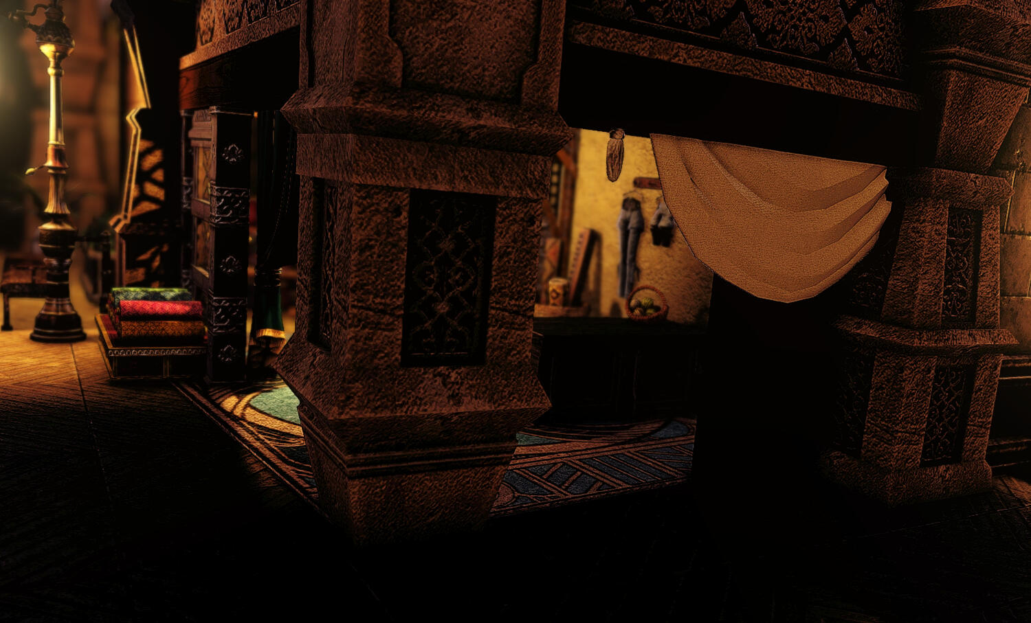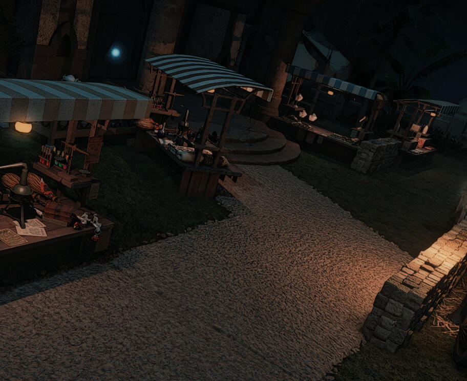 Der Goldmond Basar ist eines der ungezählten Bindeglieder zwischen den protzigen Palästen und den kleinen einfachen Gassen der Wüstenperle. Ein Schneidepunkt an dem Pomp auf Armut trifft. Jener Ort ist nicht grundlos Ziel der ein oder anderen Patrouille der Messingklingen. Ob nun zum Guten oder Schlechten, so halten diese harten Söldner so manchen Langfinger auf Abstand.Seit jeher ist es Brauch, dass sich die Händler einfinden, sobald die Sonne den Horizont küsst und die Temperaturen erträglicher werden. Mit dem Einsetzen der Nacht fluten die Buden den Mark mit allerlei feurigen Düften, in einem virtuosen Sinneskonzert aus Speis und Trank in ul'dhischer Manier, während die Markschreier einen donnernden Kanon anstimmen.Lasst euch anlocken, dann weilt auch ihr im Schein des Goldmonds, der durch die großen Fenster der Markthalle blickt.